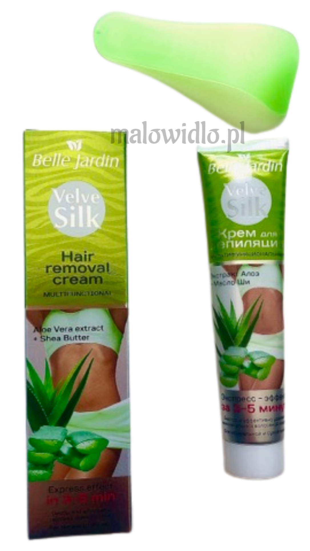 Krem do depilacji usuwania włosków wielofunkcyjny Velve Silk ALOE VERA extract & MASŁO SHEA - Belle Jardin - 75 ml (ekspresowy efekt w 3-5 minut ).