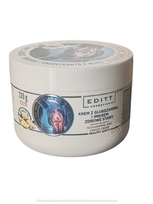 Krem z glukozaminą i imbirem przeznaczony jest do masażu i pielęgnacji skóry w okolicach stawów. Zawarta w produkcie glukozamina- naturalnie występujący w organizmie człowieka aminocukier pełni istotną rolę jako budulec skóry, stawów i więzadeł zachowując ich odpowiednią kondycję oraz wzmacniając elastyczność.