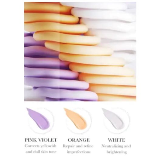 Odkryj magię doskonałego podkładu dzięki naszej Trójkolorowej Bazie pod Makijaż. Ta innowacyjna formuła łączy w sobie trzy inspirujące odcienie: fioletowy, pomarańczowy i biały, aby stworzyć harmonijną bazę pod makijaż. Każdy kolor ma swoje unikalne zadanie, zapewniając kompleksowe wyrównanie kolorytu skóry i przygotowując ją do niezwykłej sztuki makijażu.